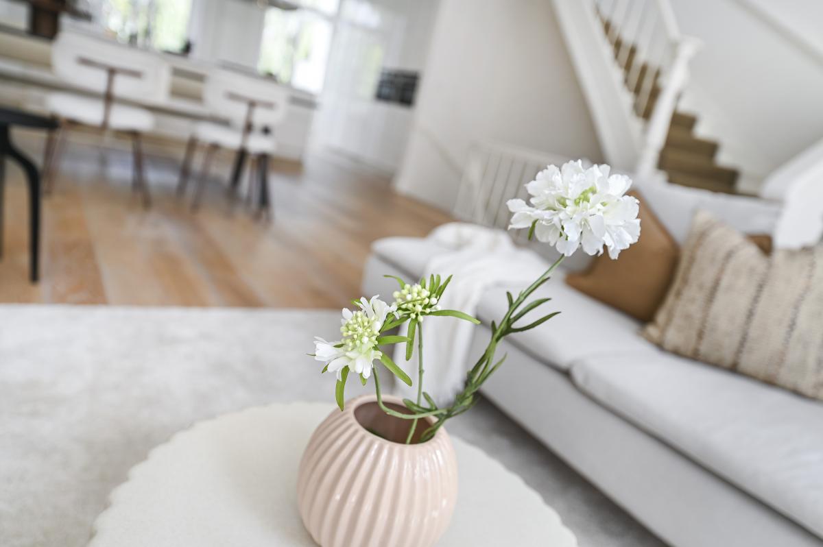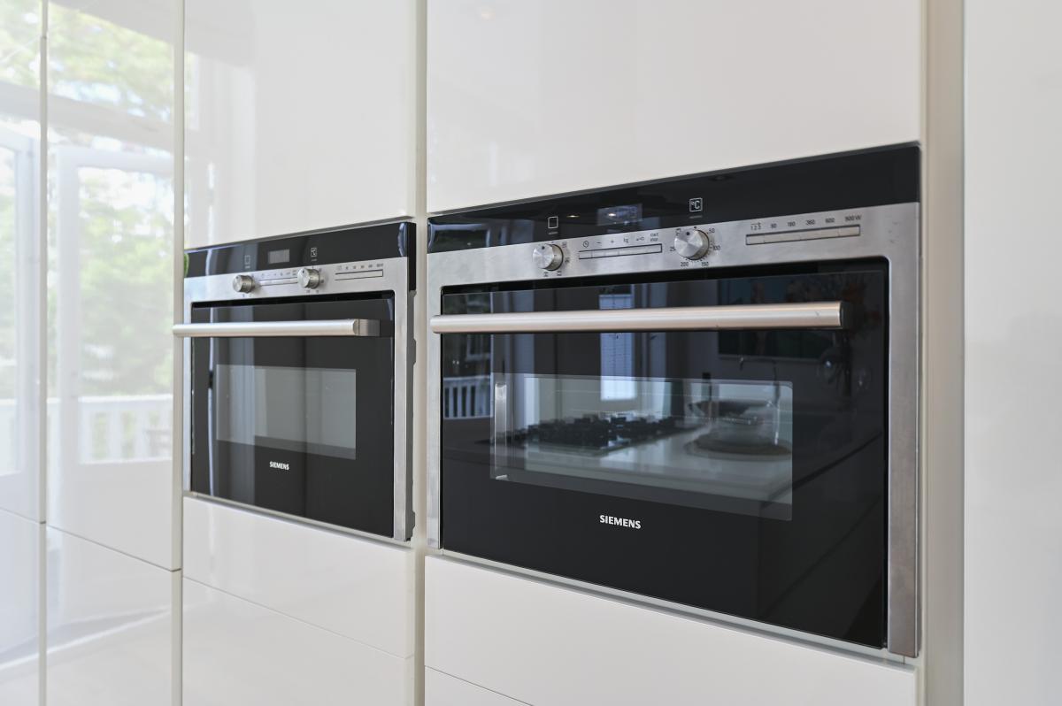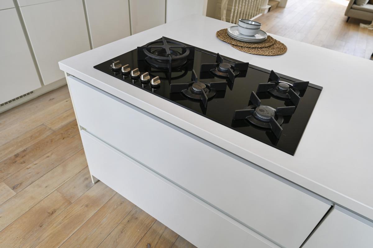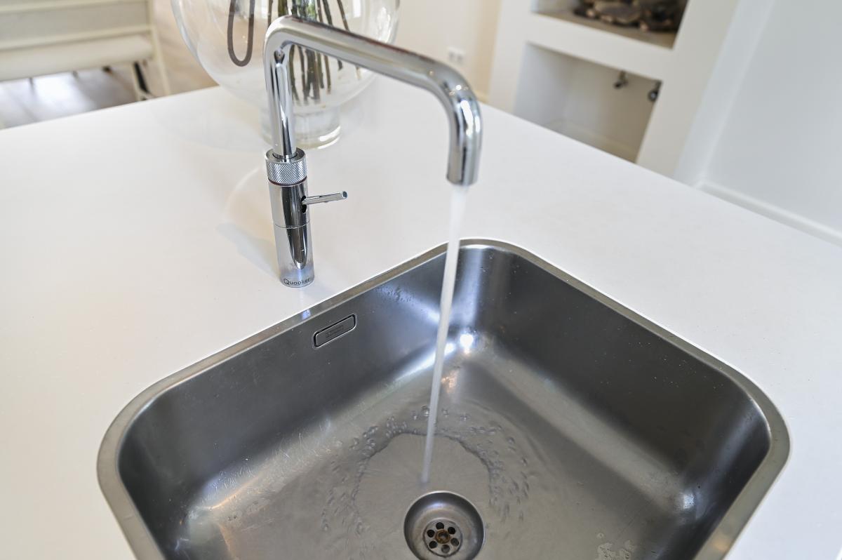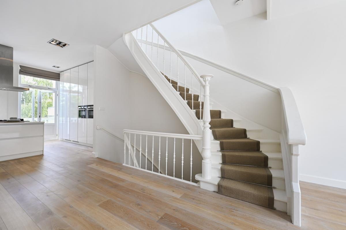 Een brede, luie trap, voorzien van fraaie originele geornamenteerde trapspijlen, geeft toegang tot de op de eerste verdieping gelegen zeer royale living met open keuken. Deze verdieping is maar liefst 76 m² groot en geeft door het open plan een heerlijk ruimtelijk gevoel. Voor de gezelligheid vindt u hier een houtgestookte openhaard en een gashaard. De keuken is voorzien van een groot kook-/spoeleiland met composiet topblad en een hoge kastenwand. De keuken is uiteraard voorzien van diverse inbouwapparatuur, waaronder een Quooker, vaatwasser, 5-pits gaskookplaat, afzuigkap, koelkast, vriezer, heteluchtoven, en combimagnetron/oven. Aan de achterzijde bieden twee dubbele openslaande deuren toegang tot een ruim terras over de gehele breedte van het huis.