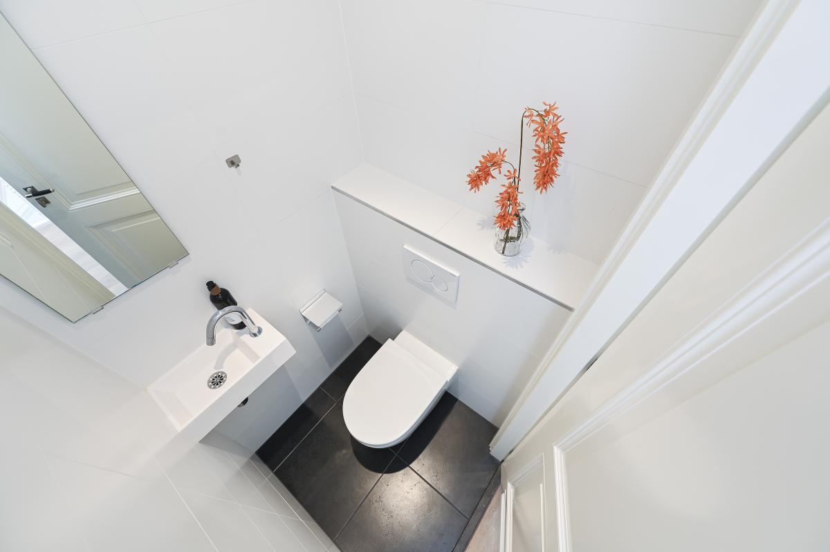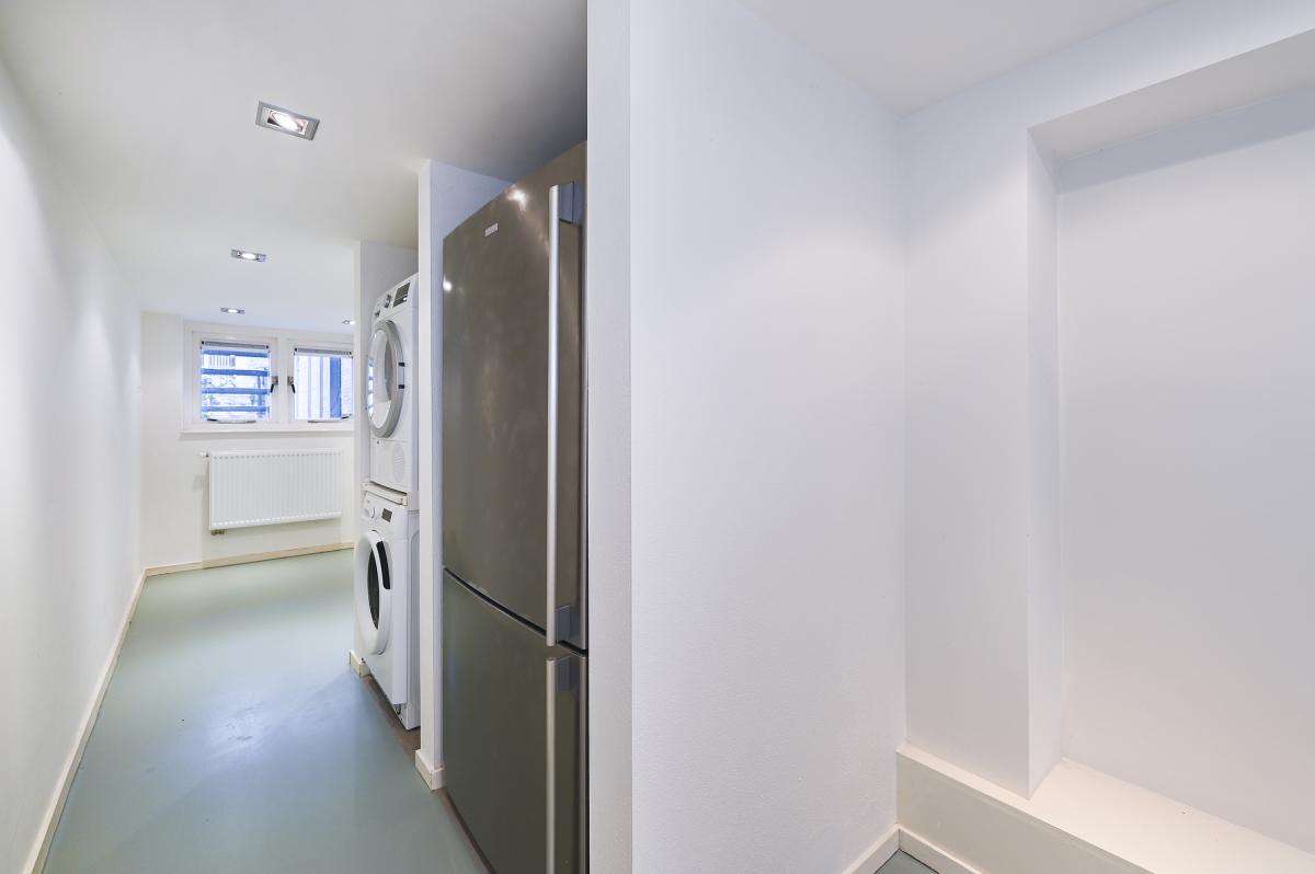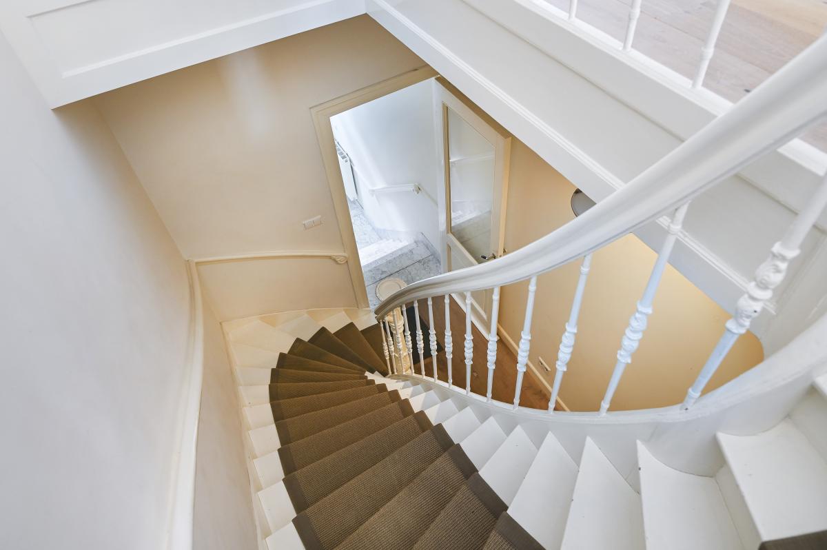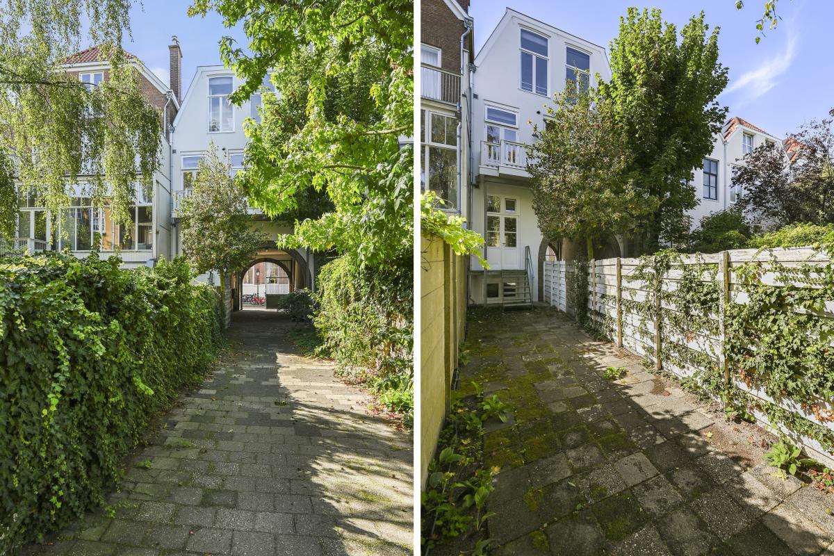 The layout: Entrance: Beautiful, entrance hall with high ceiling and marble flooring and stairs to the bel-etage. Here you'll find a modern toilet with a wall-hung toilet and hand basin, and a storage space under the stairs. At the rear is a bedroom/study with French doors leading to a landing with stairs to the back garden. The back garden is approximately 15.5 meters deep and is situated adjacent to the gate. From the entrance hall, there is also a staircase to the basement. This basement has a window at the rear and is used as a laundry and storage area.