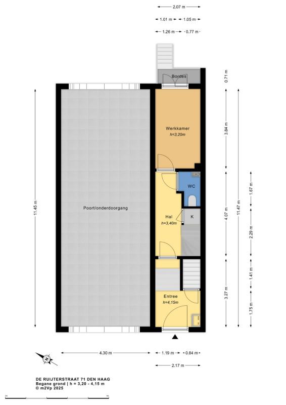 De indeling: Entree, prachtige hoge entreehal met marmeren vloer en trapje naar de bel-etage. Hier vindt u een modern toilet met vrijhangend closet en fontein en een bergruimte onder de trap. Aan de achterzijde is een slaap- annex werkkamer gelegen met openslaande deuren naar een bordes met trap naar de achtertuin. De achtertuin is ca. 15,50 meter diep en is gesitueerd naast de poort. Vanuit de entreehal is er tevens een trapje naar het souterrain. Deze is voorzien van een raam aan de achterzijde en is ingedeeld als was- en opslagruimte.