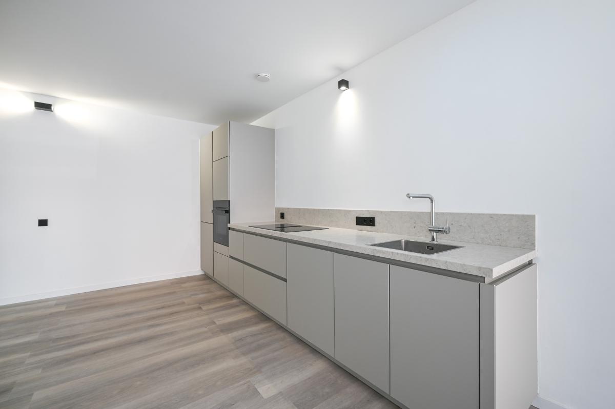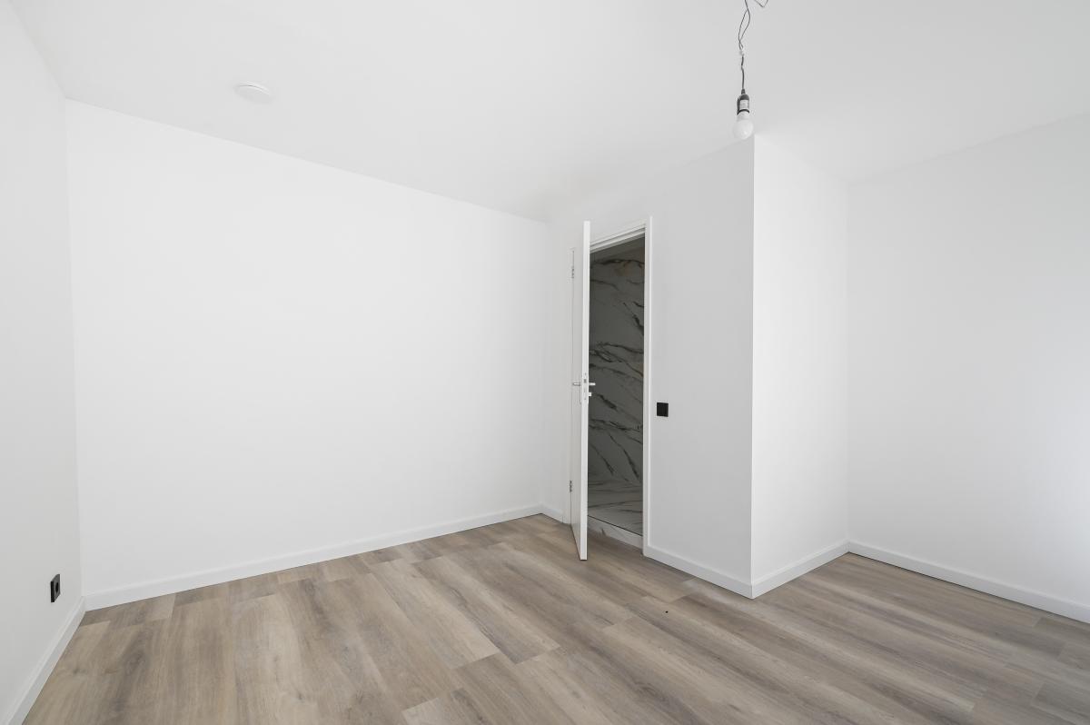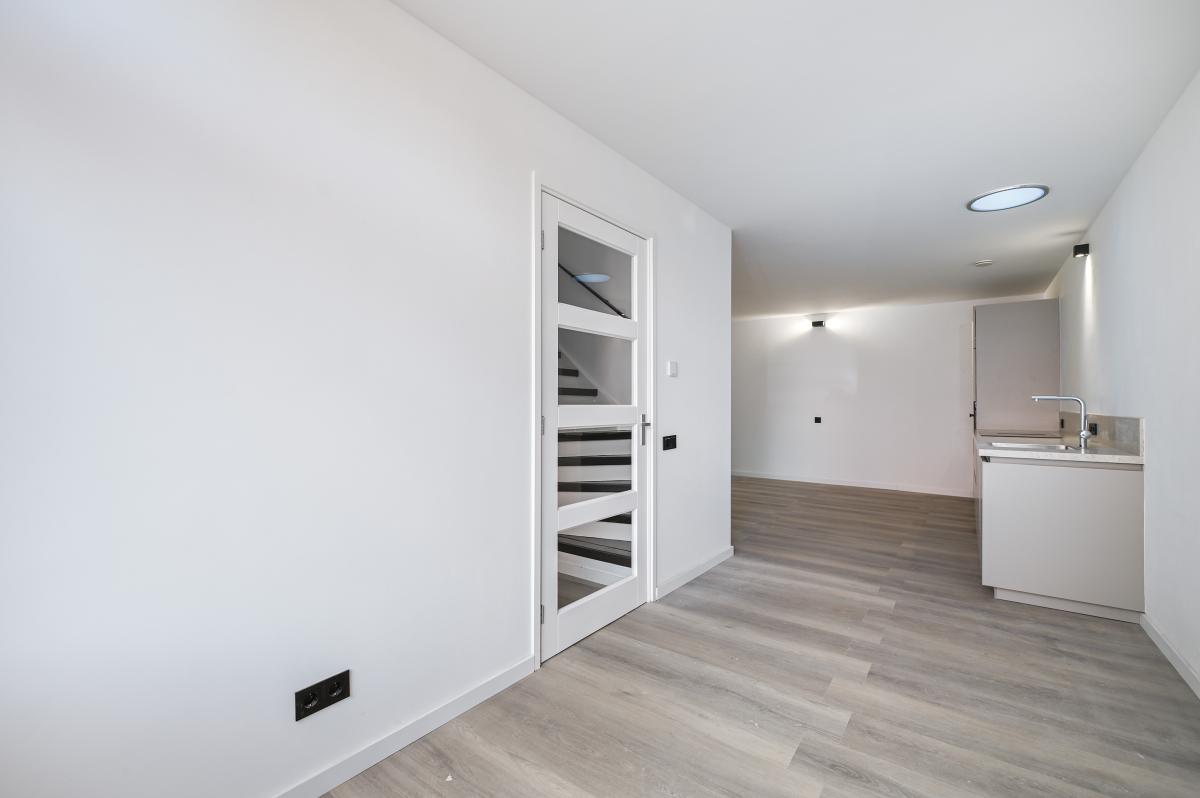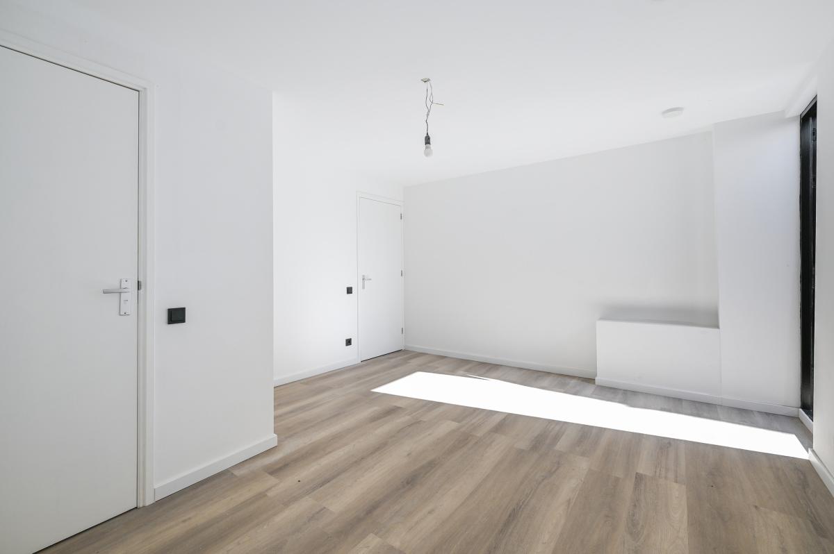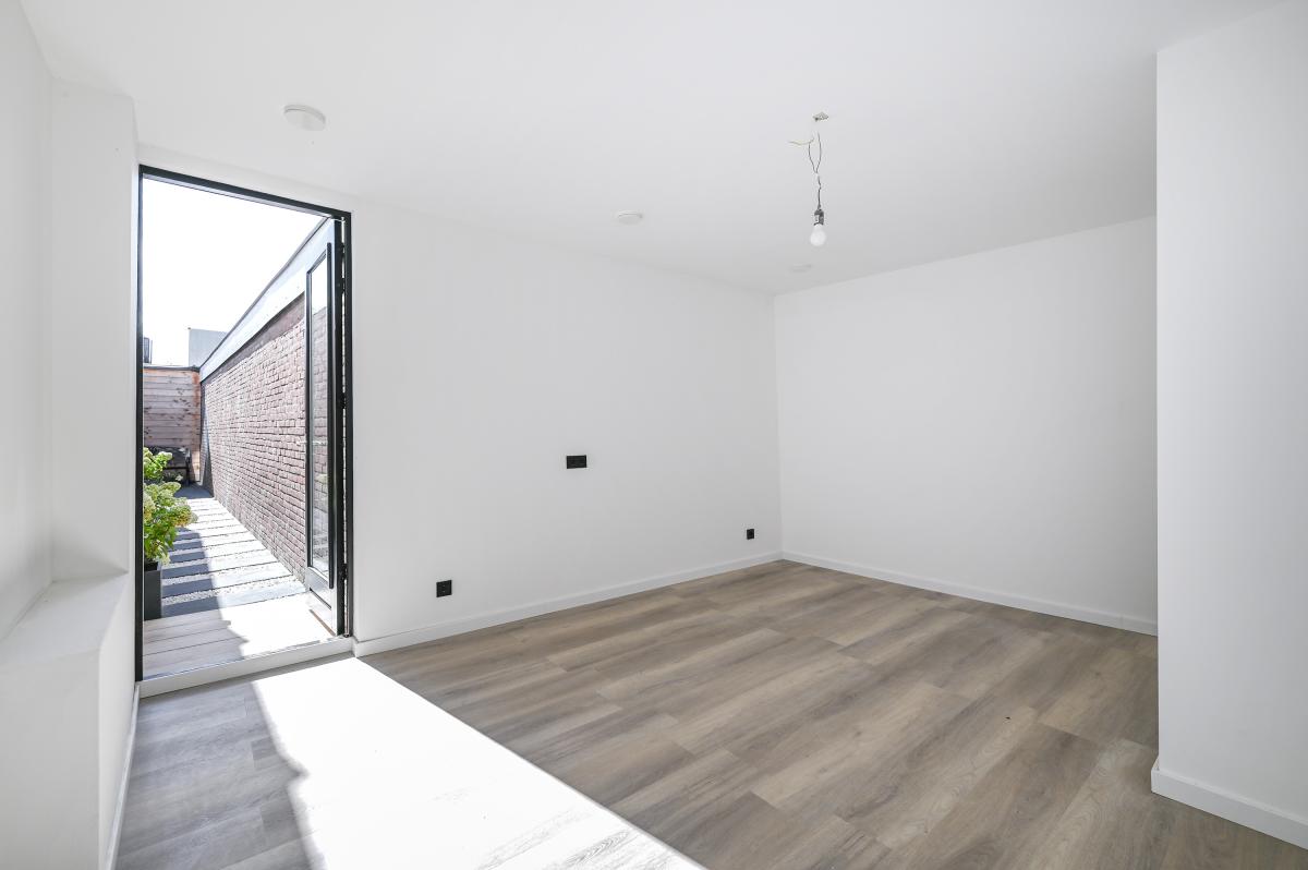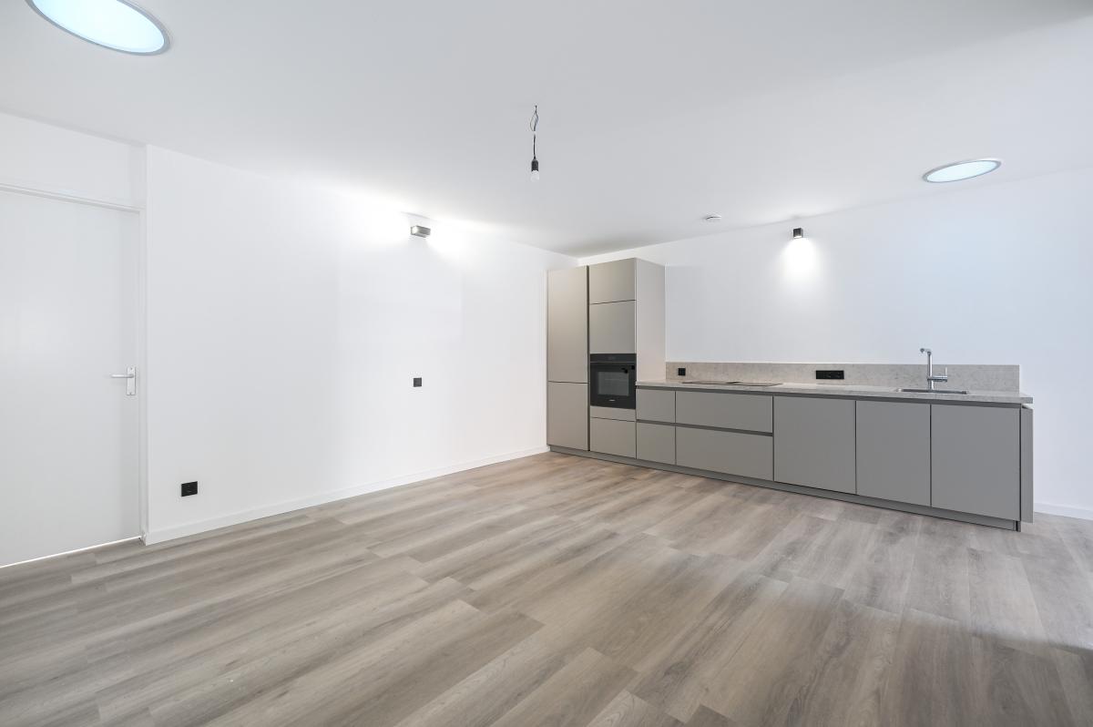 The layout: Spacious, bright entrance hall with a small staircase on the left leading to a spacious toilet with a wall-hung toilet and vanity. From the hall, you reach the L-shaped kitchen/diner. There is room for a seating area at the front. At the rear, the kitchen/diner is a generous 5.40 meters wide, providing ample space for a large dining table. Two Sola-tubes provide this part of the room with additional natural light. The new kitchen unit is placed against the wall. It features a composite countertop and various built-in appliances, including a fridge/freezer, oven, dishwasher, and induction cooktop with a built-in extractor fan. A basement is also accessible from the kitchen, providing storage space and space for the washing machine. At the rear of the kitchen, you reach the first bedroom of approximately 17 m². This bedroom has an en-suite bathroom with a walk-in shower and vanity. From this bedroom, you can access the outdoor area, which consists of a path that leads to a small courtyard.
