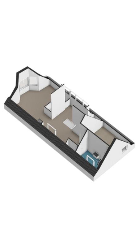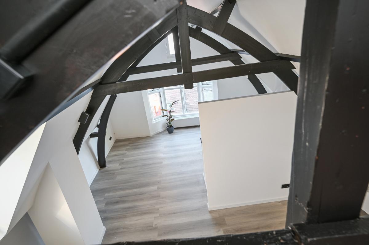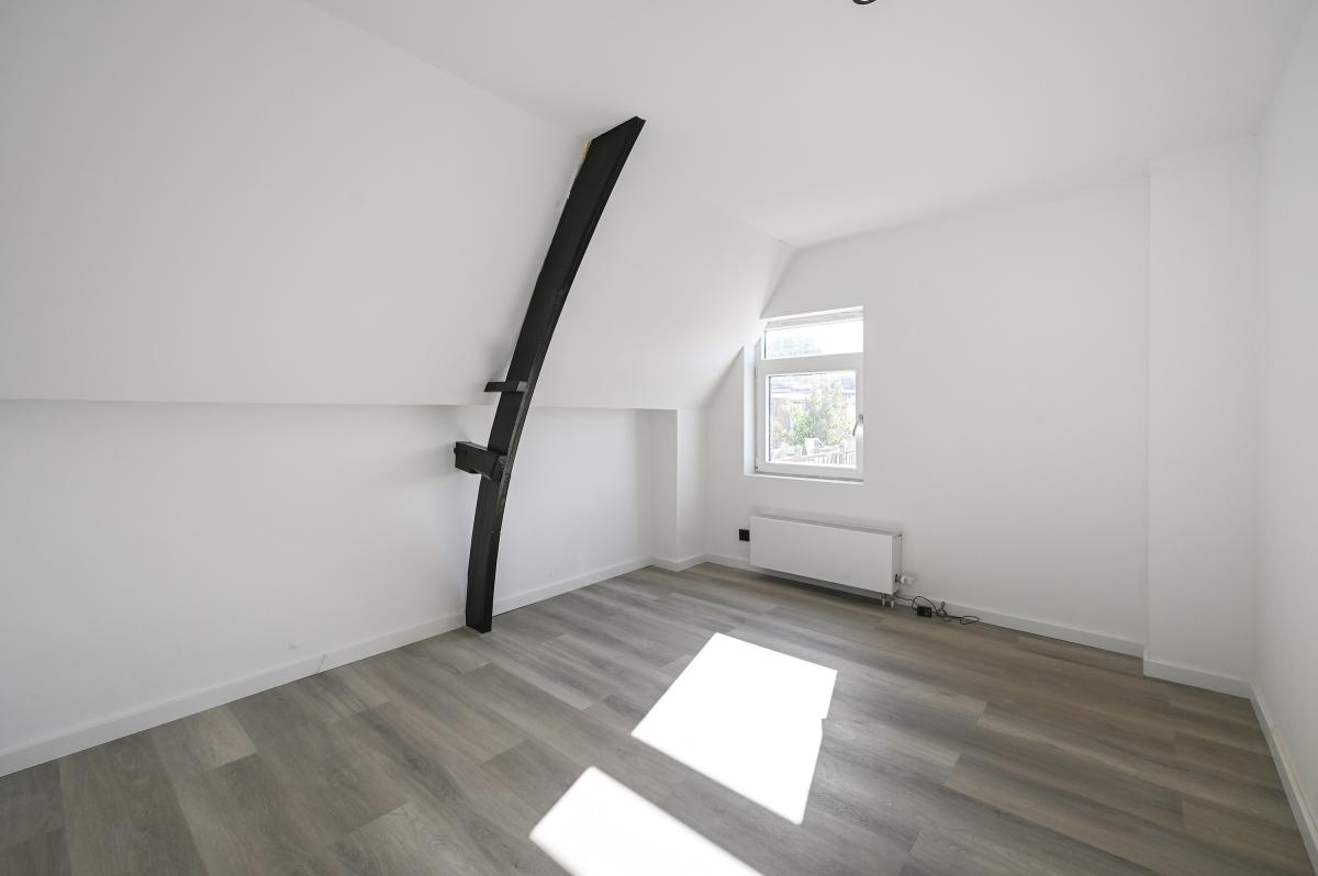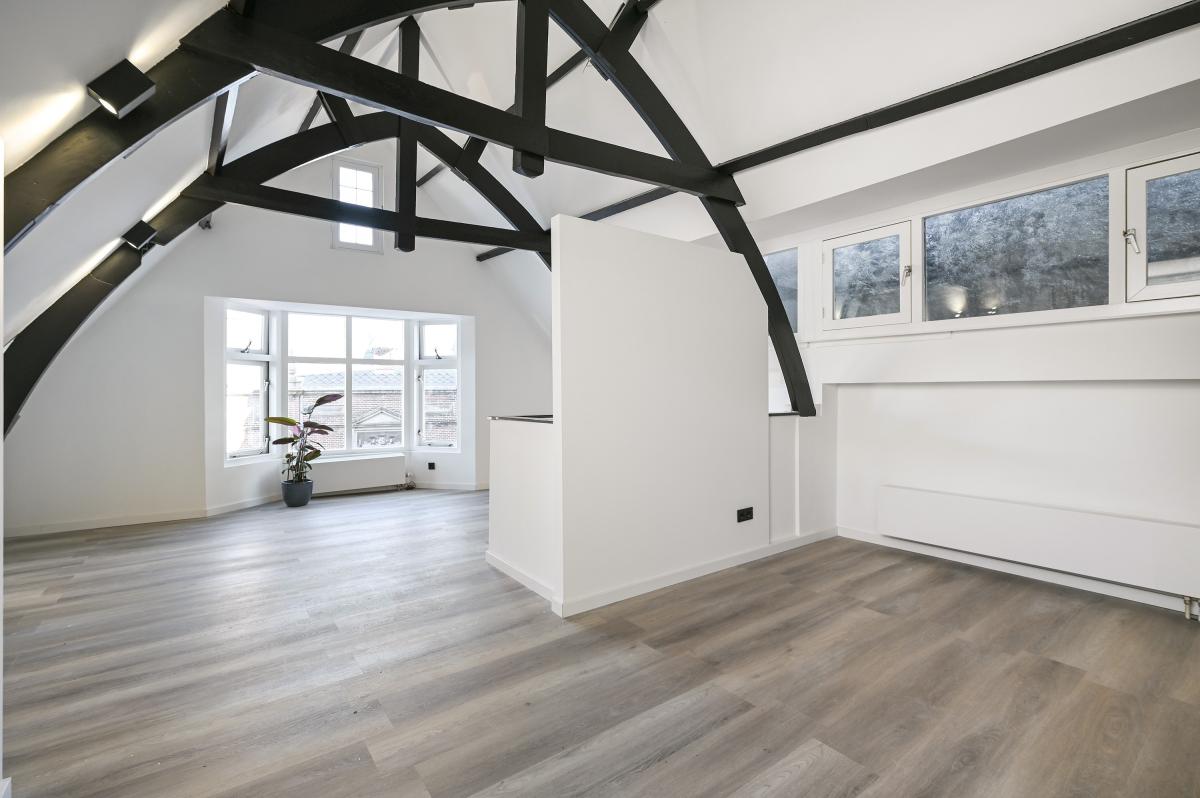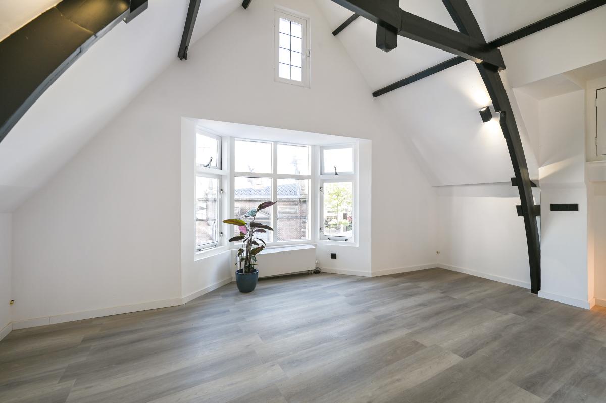Vanuit de entreehal biedt een trap met verlichte trapleuningen toegang tot de eerste verdieping. Hier vindt u de woonruimte met verschillende zones en hoekjes, zodat iedereen de indeling op zijn eigen manier kan doen (zie artist impressions om u een idee te geven). De originele spantenconstructie is echte spectaculair en deze geeft door de hoogte een groot gevoel van ruimte. Via een vlizotrap is een bergzolder bereikbaar alwaar u ook de hybride c.v.-ketel vindt en de omvormer van de zonnepanelen. Aan de achterzijde bevindt zich de tweede slaapkamer (ca. 13 m²) met daarnaast gelegen tweede badkamer, die is voorzien van een inloopdouche, wastafel, toilet en (elektrische) vloerverwarming.