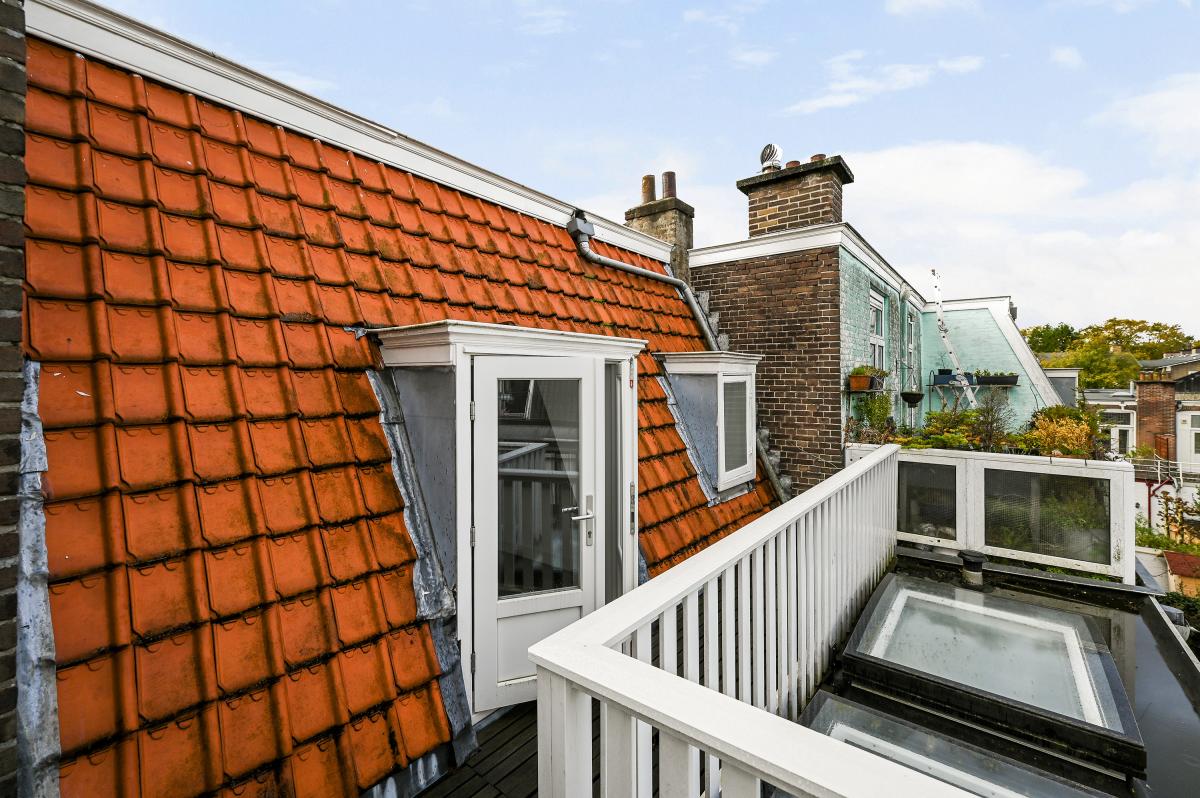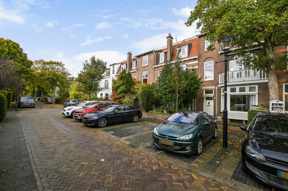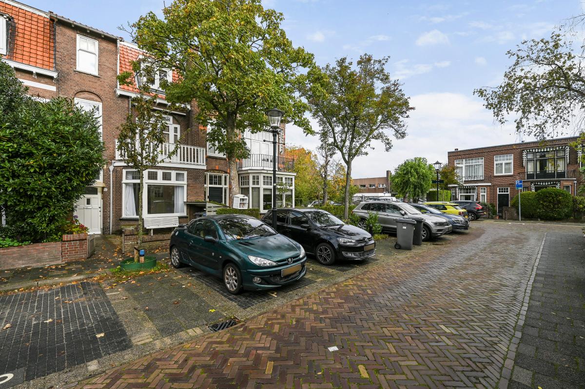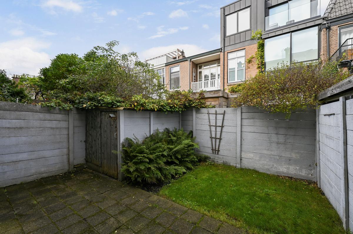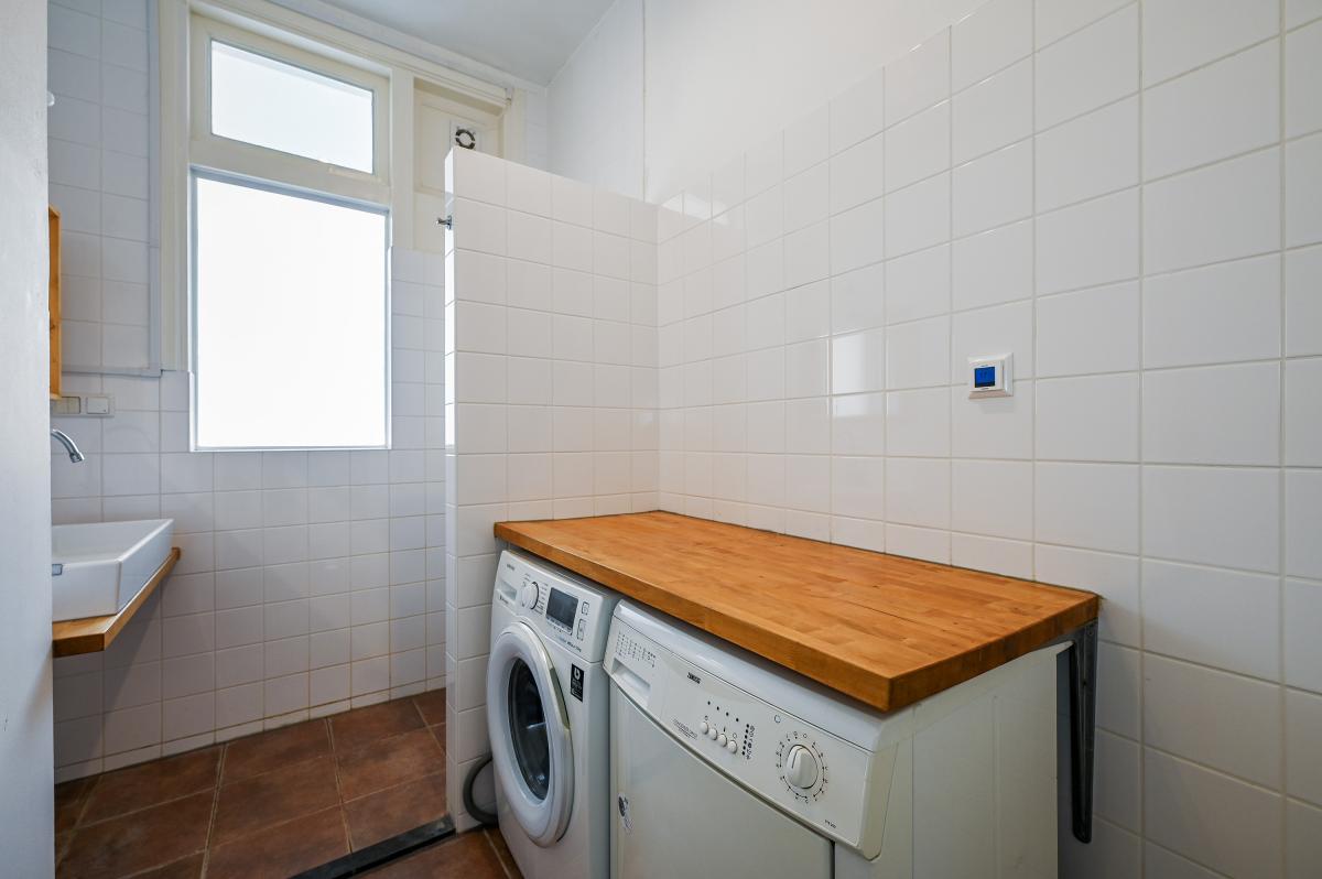 Layout: The entrance to the house is reached via the front garden. Vestibule with a closet and meter cupboard and beautiful door that leads to the hallway, which offers space under the stairs, a built-in closet, and a toilet with a small sink. In the hallway, two doors provide access to the front and back rooms of the en-suite rooms. These rooms still retain various period features, such as marble fireplaces, ceilings with molded ceilings and the original suite partition, which features sliding doors with stained glass and four built-in cupboards. At the rear is a conservatory, which has been opened up towards the kitchen. The kitchen, which is also accessible from the hallway, has a simple yet functional design and is equipped with some built-in appliances. The small back garden is accessible from the kitchen, as well as through French doors from the conservatory. This garden is approximately 5 meters deep and faces northwest. A storage room is located in the garden.
