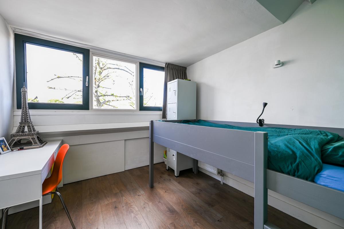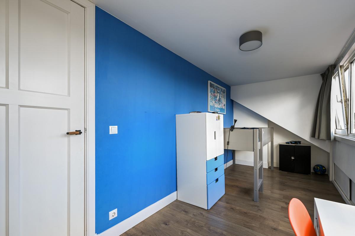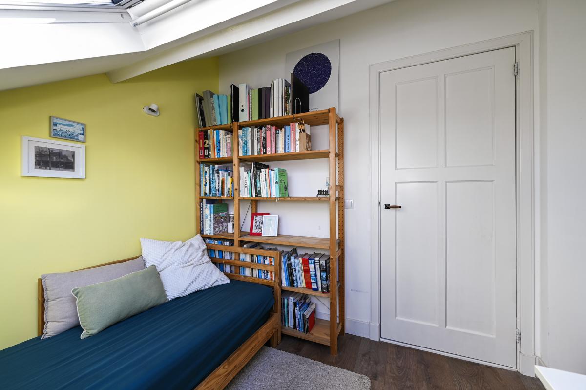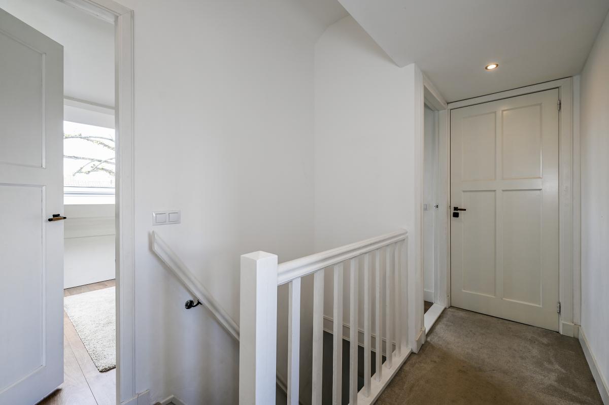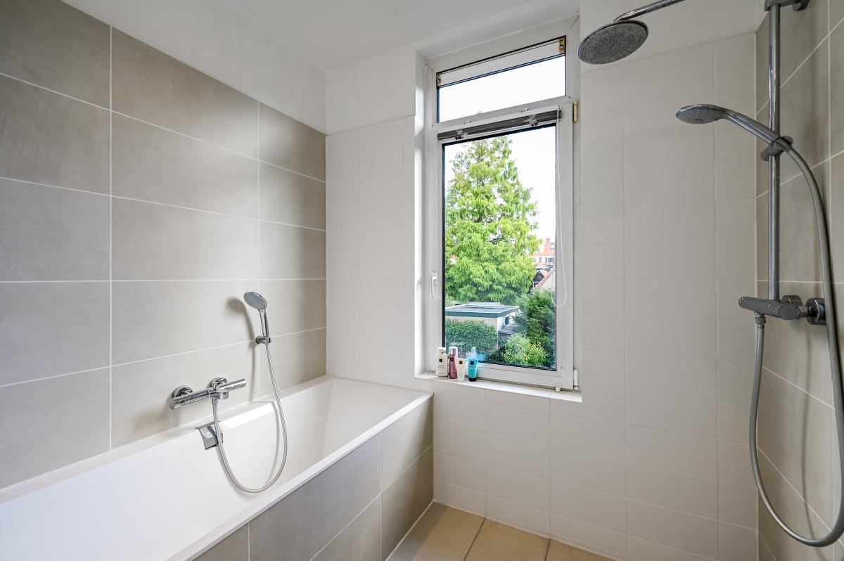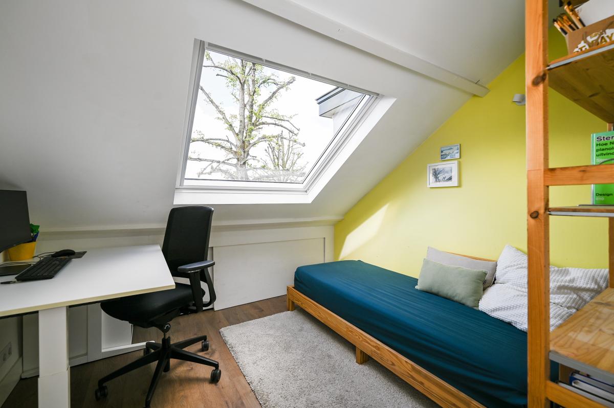 Second floor: The layout of this floor has been carefully considered: here you'll find three more good-sized bedrooms and a second bathroom! The layout is as follows: a landing with a cupboard housing the central heating boiler, two bedrooms at the front, one with a dormer window and one with a large Velux window. A bedroom at the rear spans the entire width of the house. There is ample storage space behind the walls in all bedrooms. The second bathroom is finished in the same modern style as the bathroom on the first floor. It features a spacious walk-in shower, a vanity unit, and a third toilet. This bathroom also has underfloor heating.