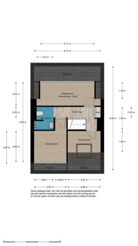 Tweede verdieping: Over de indeling van deze verdieping is echt goed nagedacht: hier vindt u namelijk nog drie goede slaapkamers en een tweede badkamer! De indeling is als volgt: overloop waaraan kast met de cv-ketel, twee aan de voorzijde gelegen slaapkamers, waarvan een met dakkapel en een met groot Velux-raam. Aan de achterzijde gelegen slaapkamer over de volle breedte van de woning. Achter de knieschotten in alle slaapkamers is nog veel bergruimte te vinden. De tweede badkamer is uitgevoerd in dezelfde moderne stijl als de badkamer op de eerste verdieping. Er is een ruime inloopdouche te vinden, een wastafelmeubel en een derde toilet. Ook deze badkamer beschikt over vloerverwarming.