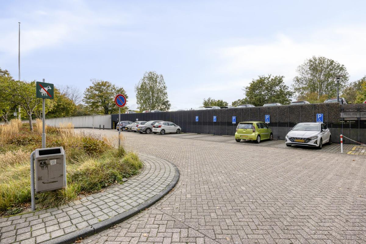 In de onderbouw van het complex is een fietsenberging aanwezig. In de overdekte parkeergarage wordt een eigen parkeerplaats te koop of te huur aangeboden.