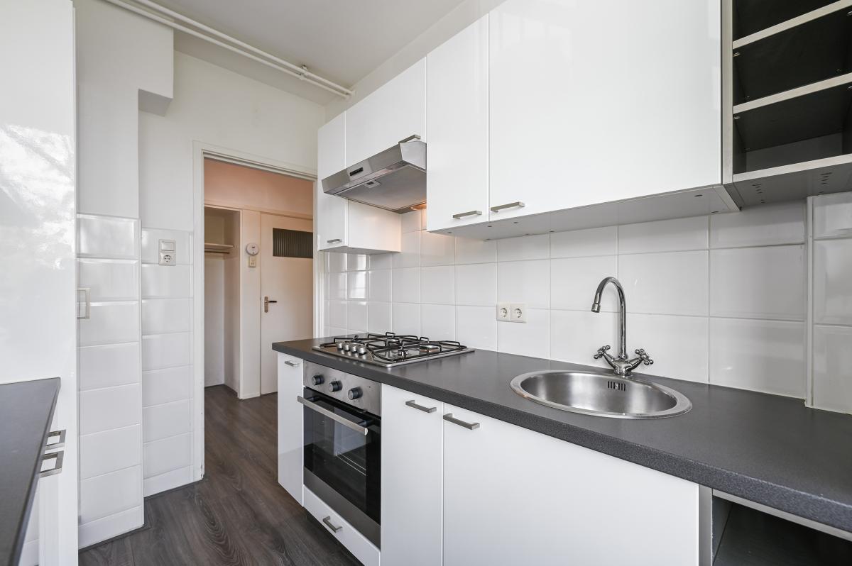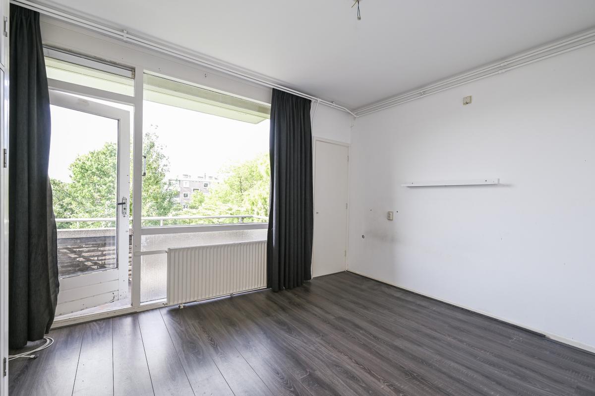 Entree via kleine parkeerplaats voor het gebouw, gesloten portiek - met videofoon bellen - entree centrale hal, trapopgang naar de woonetage ( derde woonlaag ) toegang woning, ruime hal met toilet, direct de eerste slaapkamer aan de achterzijde gelegen. De moderne dichte keuken bevind zich tussen de achterslaapkamer en de woonkamer in. Je zou kunnen kiezen om de keuken naar de achterkamer te verplaatsen en dan een extra werkkamer te creëren. Thans is de woon- eetkamer zeer ruim en licht, beschikt over een balkon aan de achterzijde en dus door de hoekligging veel licht rondom!