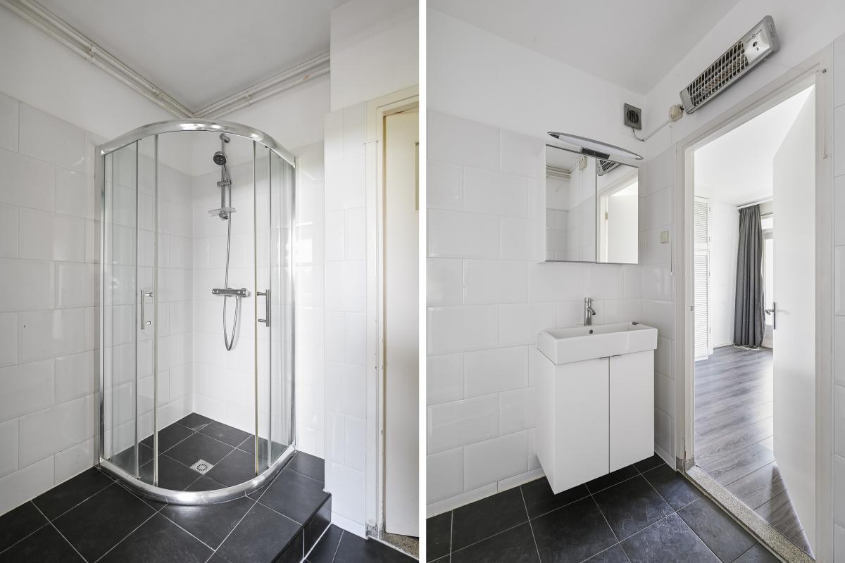 Vanuit de gang / hal, toegang tot de badkamer, deze omvat een wastafel, hoekdouche en wasmachine opstelling, doorloop naar de grote slaapkamer met veel vaste kastruimte, toegang tot het zonnige voorbalkon ( middag en avond zon ) Ruime berging in de onderbouw.